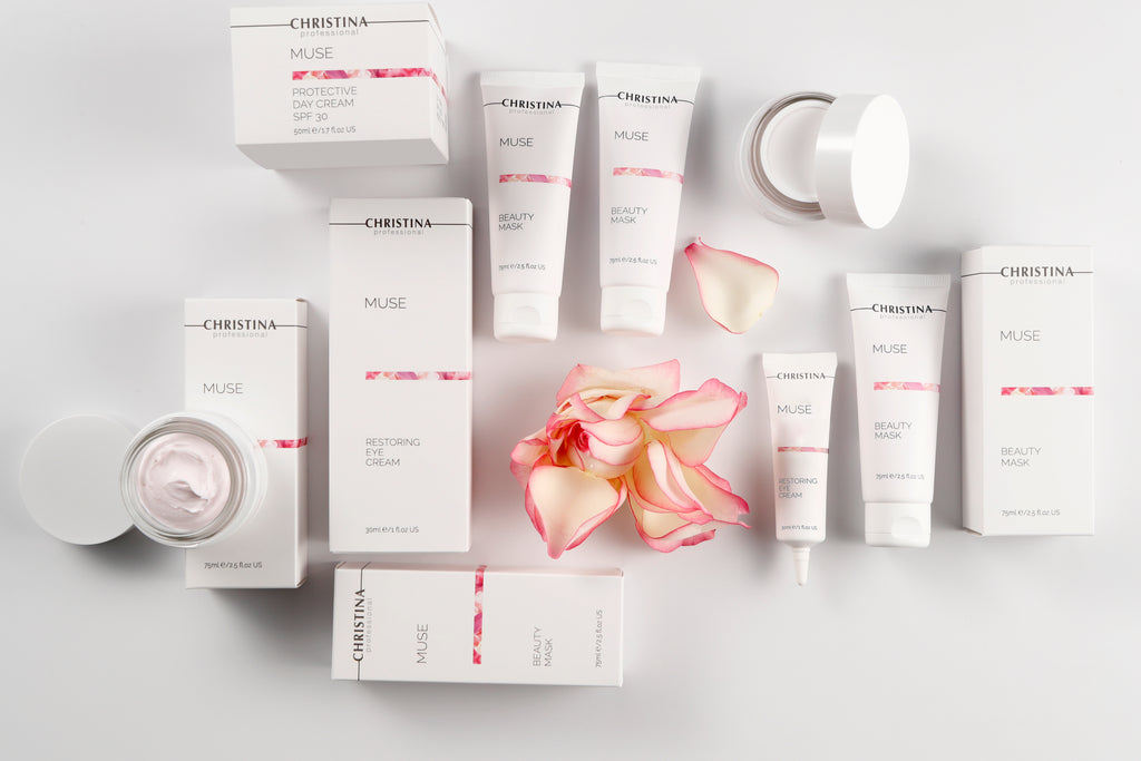 Die Muse-Behandlung und -Produkte kombinieren die angenehmen Vorzüge der Rose zusammen mit preisgekrönten wissenschaftlichen Formeln. Muse bekämpft die Ursachen und Symptome einer Verschlechterung der Qualität und des Zustands der Haut mit einer effektiven Behandlung, die sie entgiftet, nährt und verjüngt. Muse - Christinas Formel für jünger aussehende, schönere Haut, die viel länger anhält.